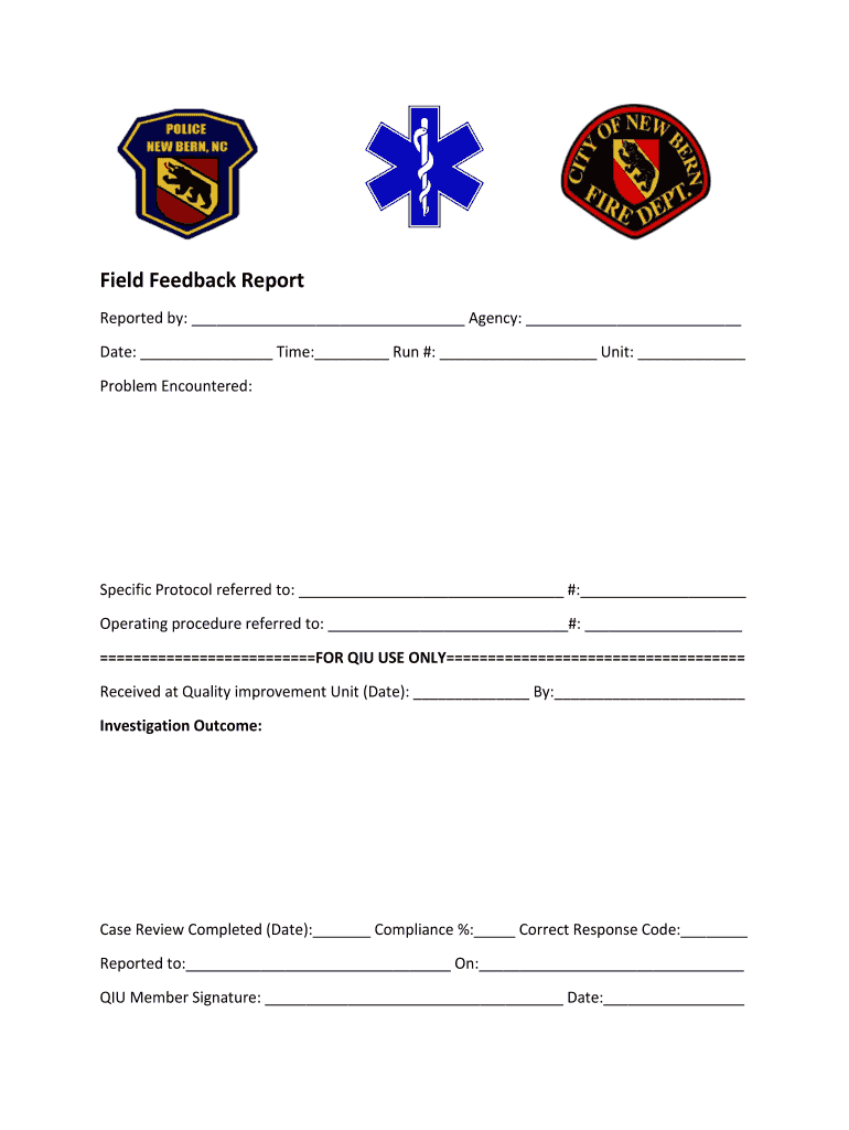 Field Feedback Report Reported by: Agency: Date: Time: Run #: Unit: Problem Encountered:Specific Protocol referred to: #: Operating procedure referred to: #: FOR AIU USE ONLY Received at Quality improvement