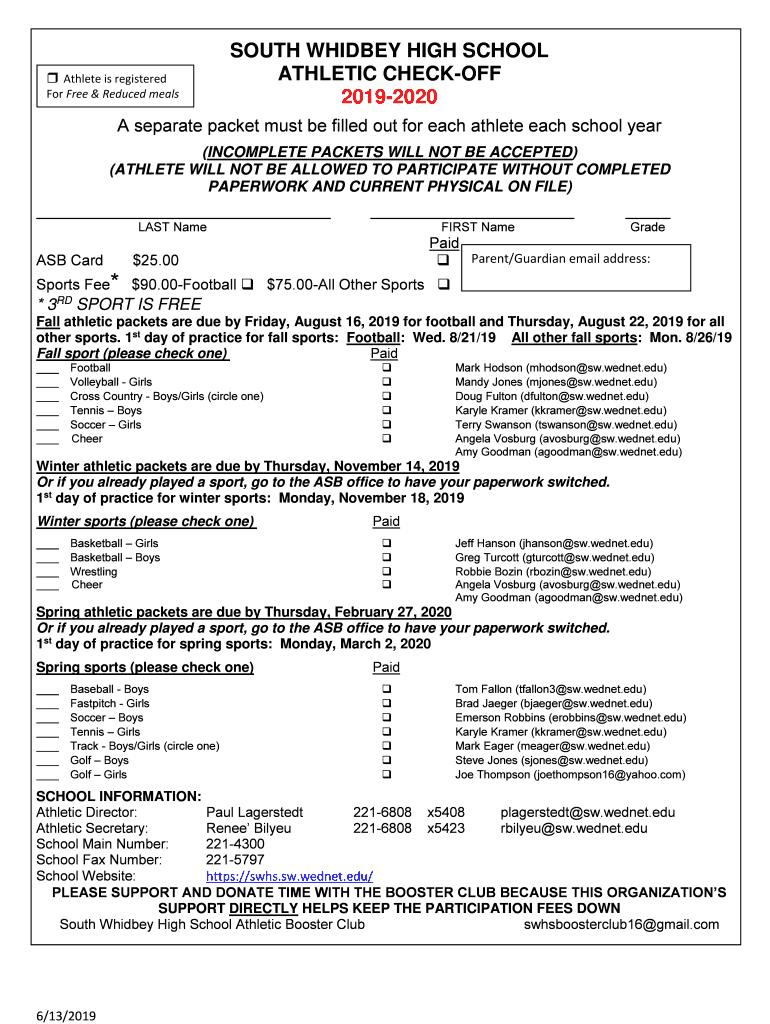 20192020A separate packet must be filled out for each athlete each school year
