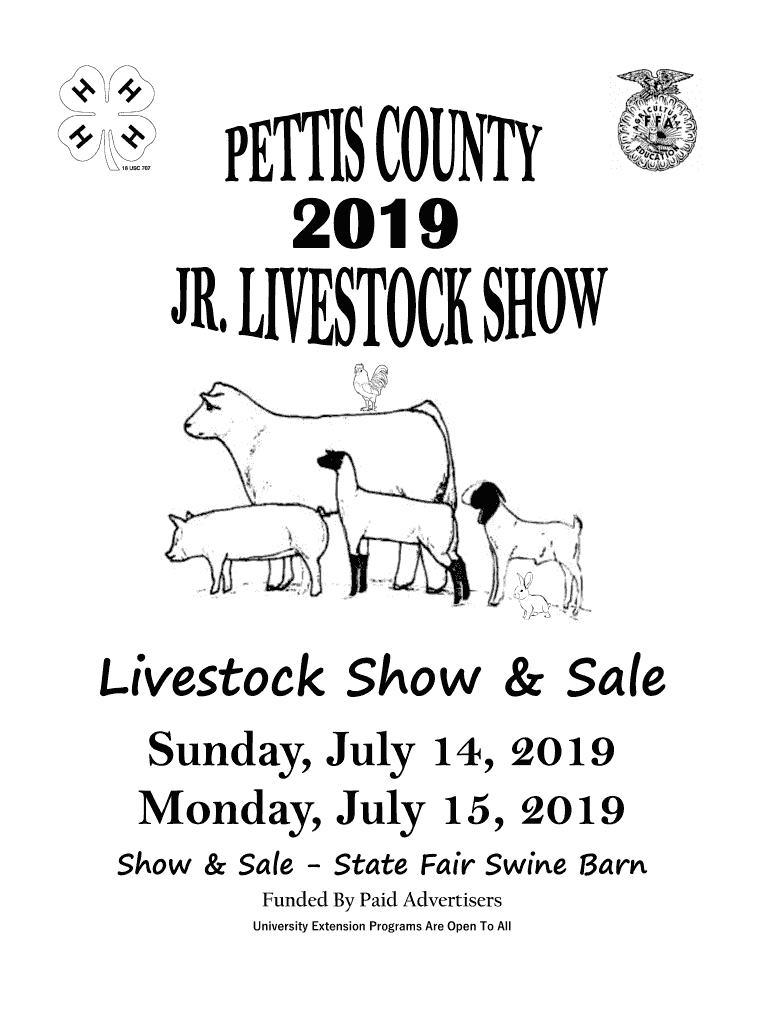 2019Livestock Show & Sale Sunday, July 14, 2019, Monday, July 15, 2019, Show & Sale State Fair Swine Barn Funded By Paid Advertisers University Extension Programs Are Open To All. LIVESTOCK SCHEDULERegistration