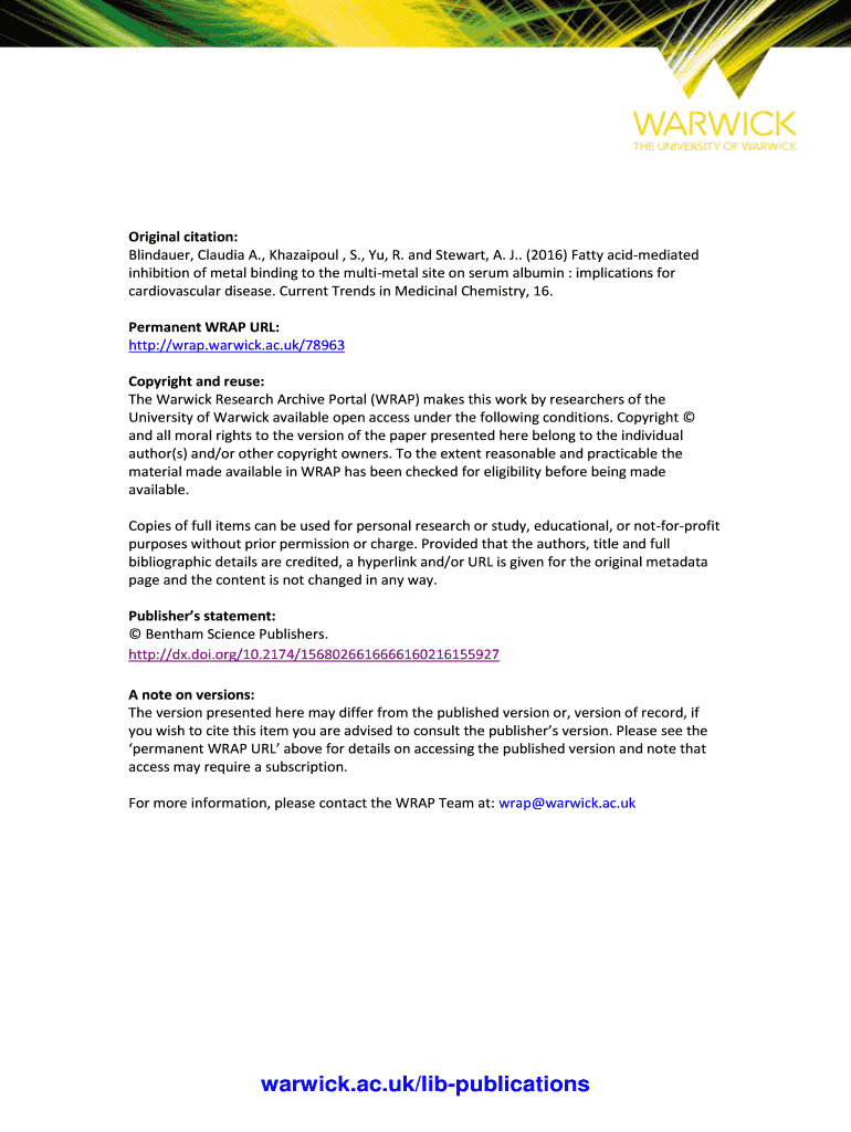 Blinder, Claudia A., Khazaipoul, S., You, R. and Stewart, A. J. (2016) Fatty acid mediated