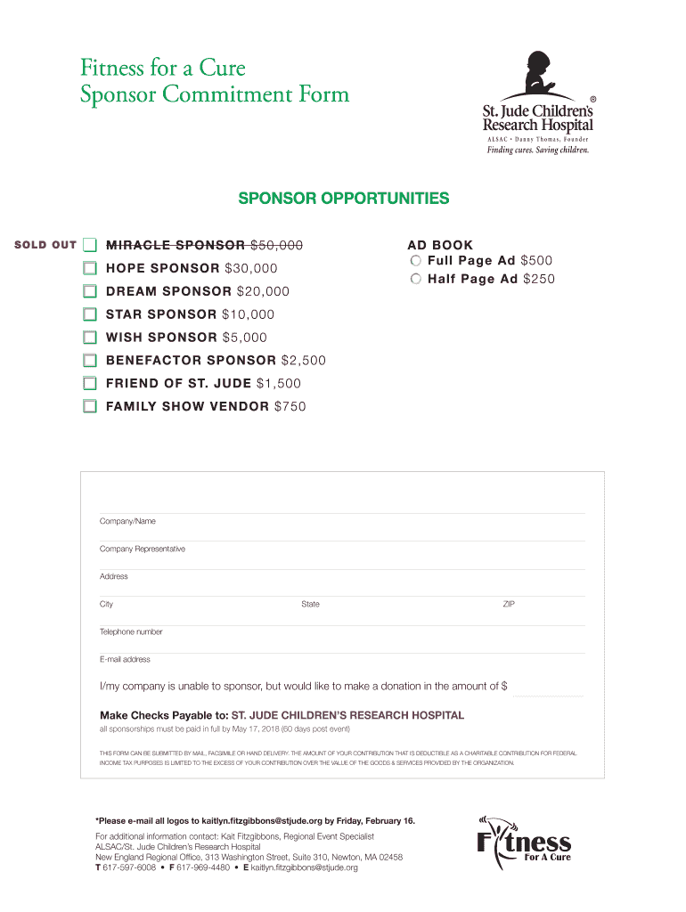 Get the free St. Jude Fitness For A Cure Sponsor Form. St. Jude Fitness For A Cure Sponsor Form