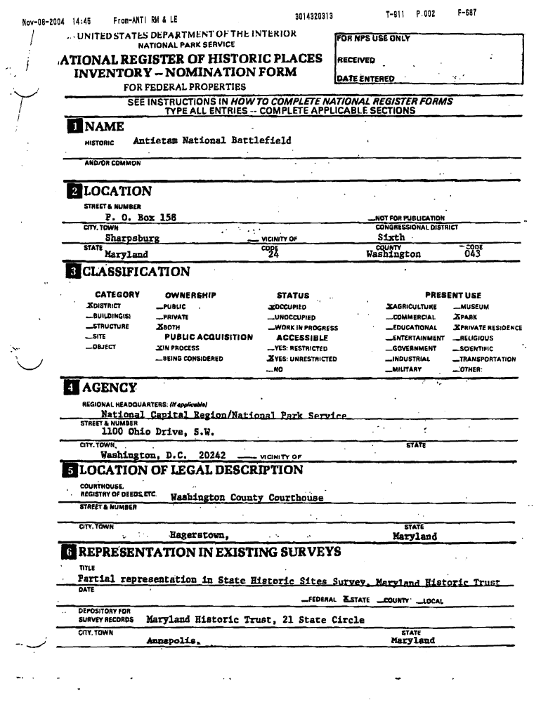 /Romantic RM 4 LE. UNITED States DtPAjtTMHNTOFTHb INTtKIORF687P.002FOR NFS USE ONLYNATIONAL PARK SERVICE
