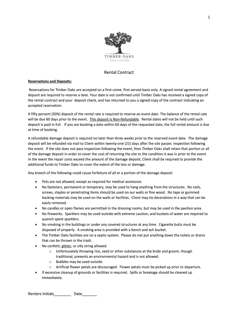 Get the free Rental Contract - Timber Oaks Event Venue