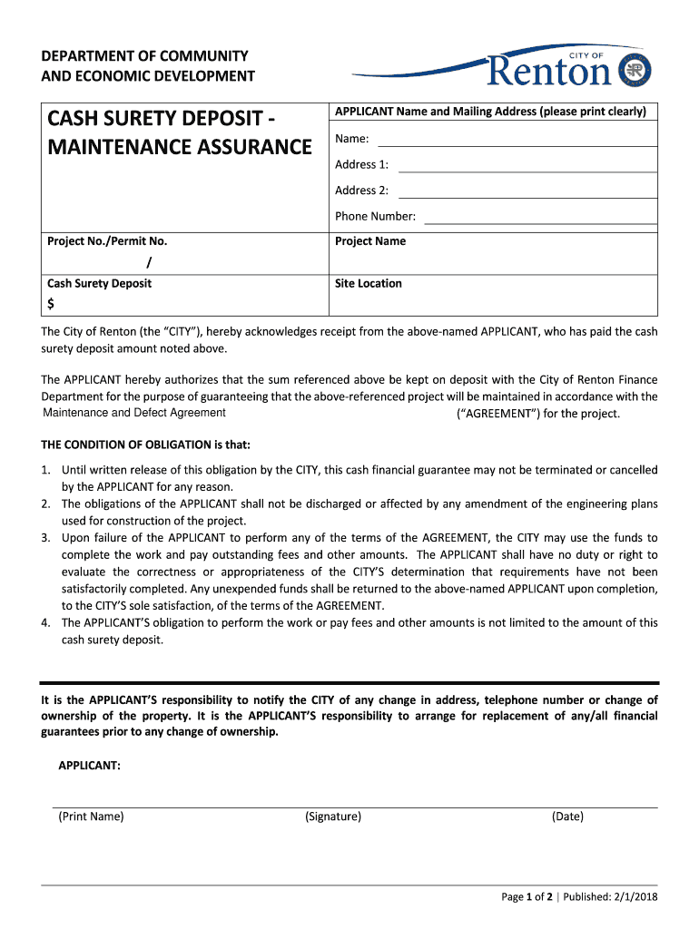 AND ECONOMIC DEVELOPMENTS SURETY DEPOSIT MAINTENANCE ASSURANCEAPPLICANT Name and Mailing Address (please print clearly)
