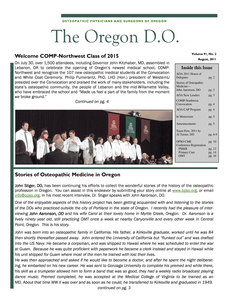 OSTEOPATHIC PHYSICIANS AND SURGEONS OF Oregon D.O.