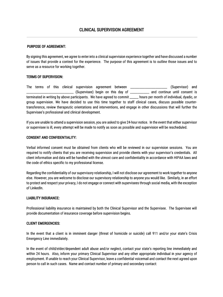 How to fill out sample clinical supervision agreementdocx