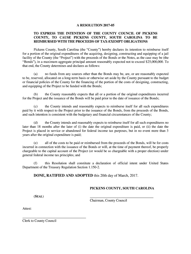TO EXPRESS THE INTENTION OF THE COUNTY COUNCIL OF PICKENS
