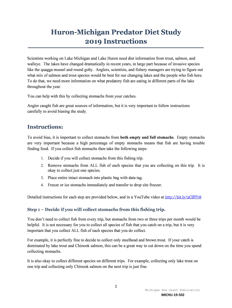 Scientists working on Lake Michigan and Lake Huron need diet information from trout, salmon, and
