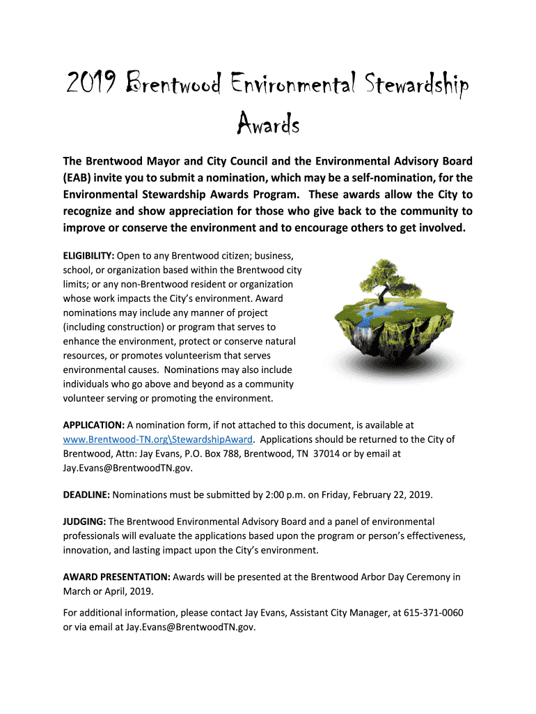 Get the free Environmental Stewardship AwardsCity of Brentwood