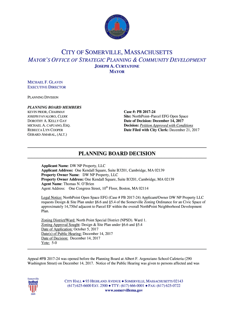 CITY OF SOMERVILLE, MASSACHUSETTS MAYORS OFFICE OF STRATEGIC PLANNING & COMMUNITY DEVELOPMENT JOSEPH A. CURBSTONE MAYOR MICHAEL F. GAVIN EXECUTIVE DIRECTOR PLANNING DIVISION PLANNING BOARD MEMBERS