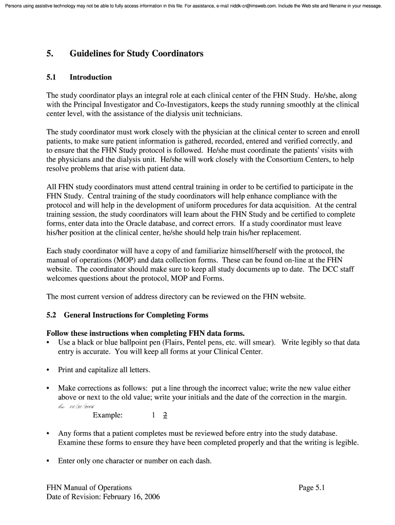 Get the free FHN MOP Chap. 2 Guidelines for Study Coordinators