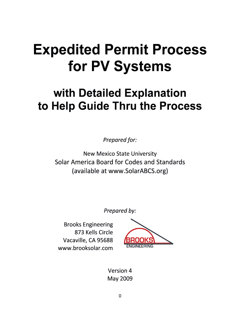 Expedited Permit Process for PV Systems with Detailed Explanation to Help Guide Through the Process Prepared for: NewMexicoStateUniversitySolarAmericaBoardforCodesandStandards (availableatwww.Scarabs.org)