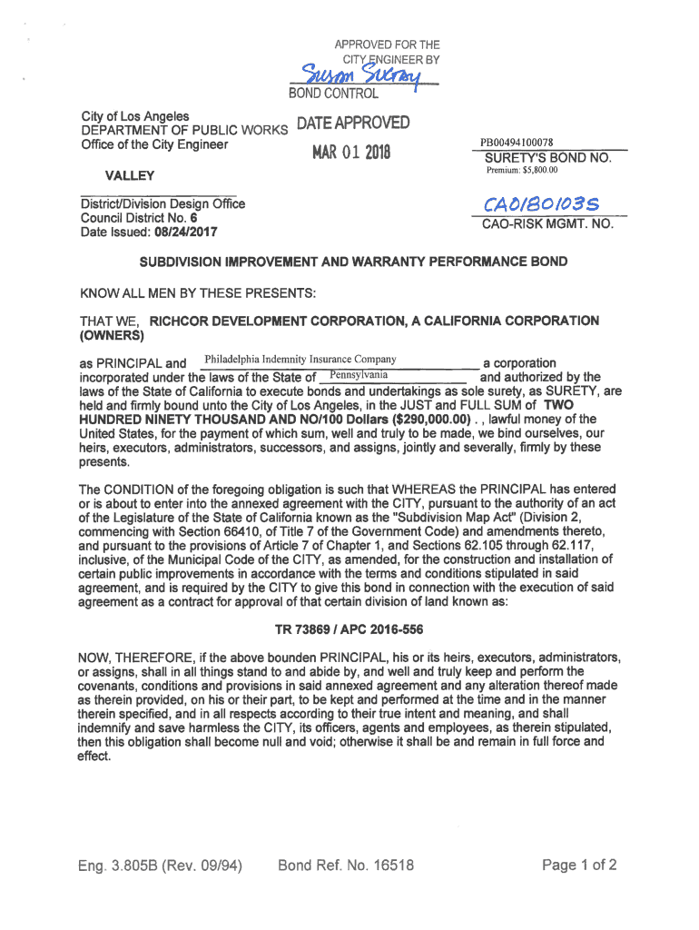 MAR 01 201BPB00494100078SURETY\'S BOND NO.