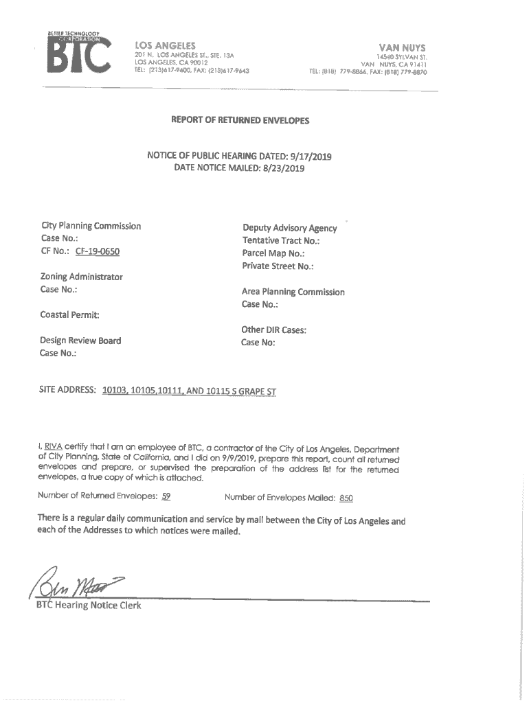 Get the free BTC LOS ANGELES VAN NUYS REPORT OF RETURNED ...
