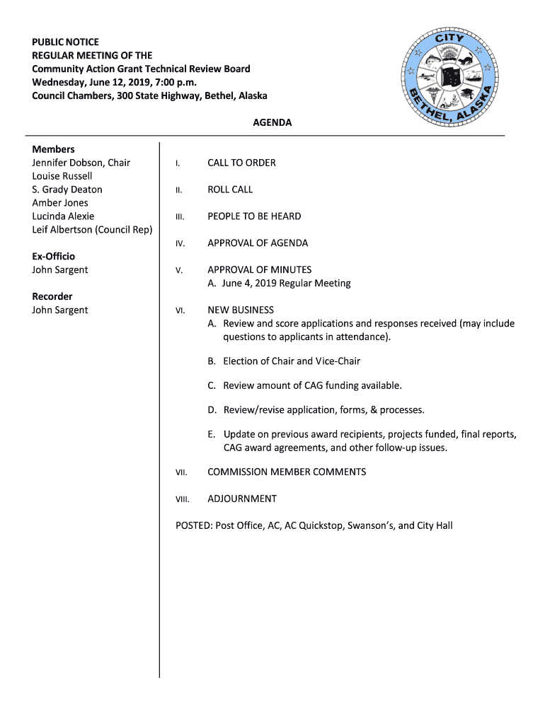 Council Chambers, 300 State Highway, Ethel, Alaska