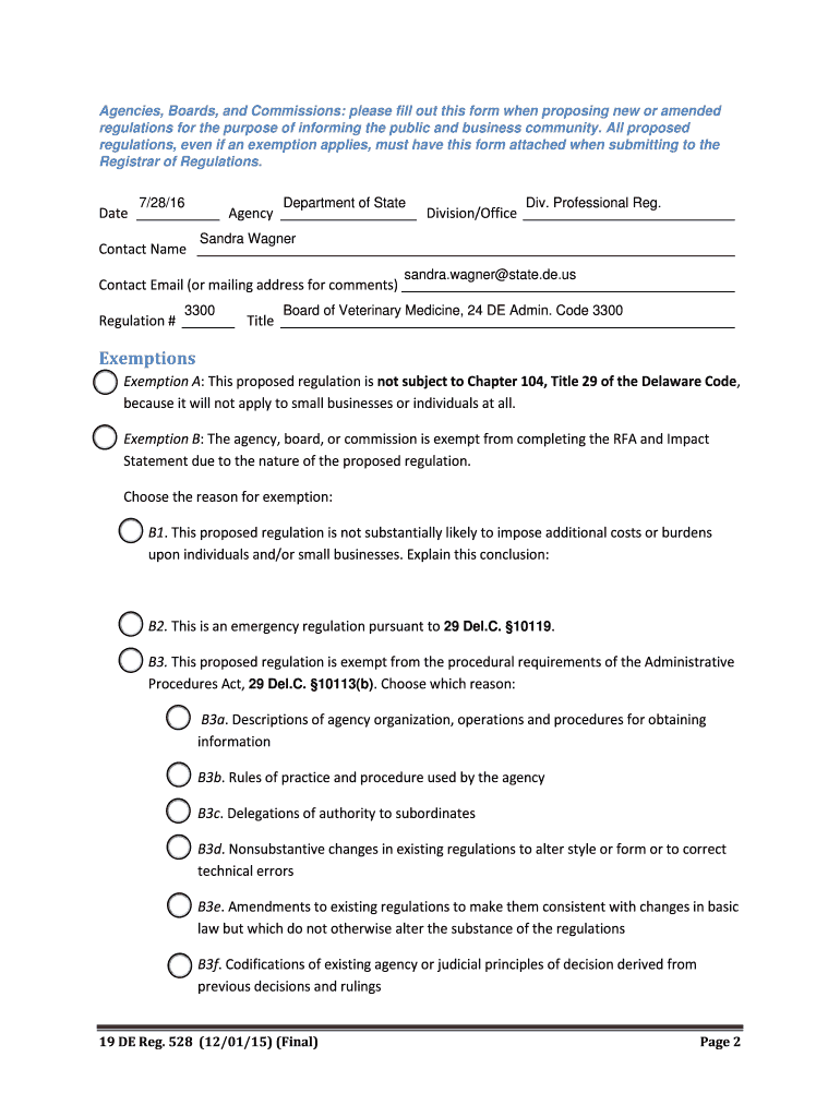 Get the free Professional Reg - regulations delaware