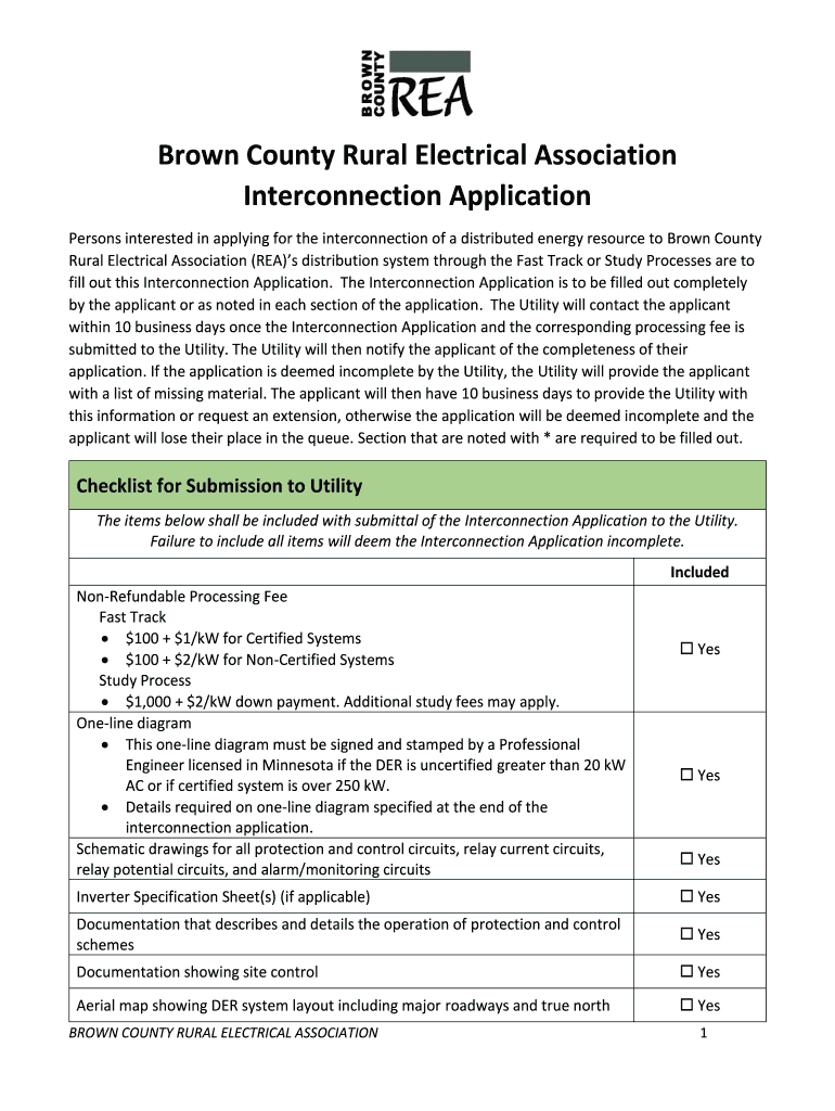 Persons interested in applying for the interconnection of a distributed energy resource to Brown County