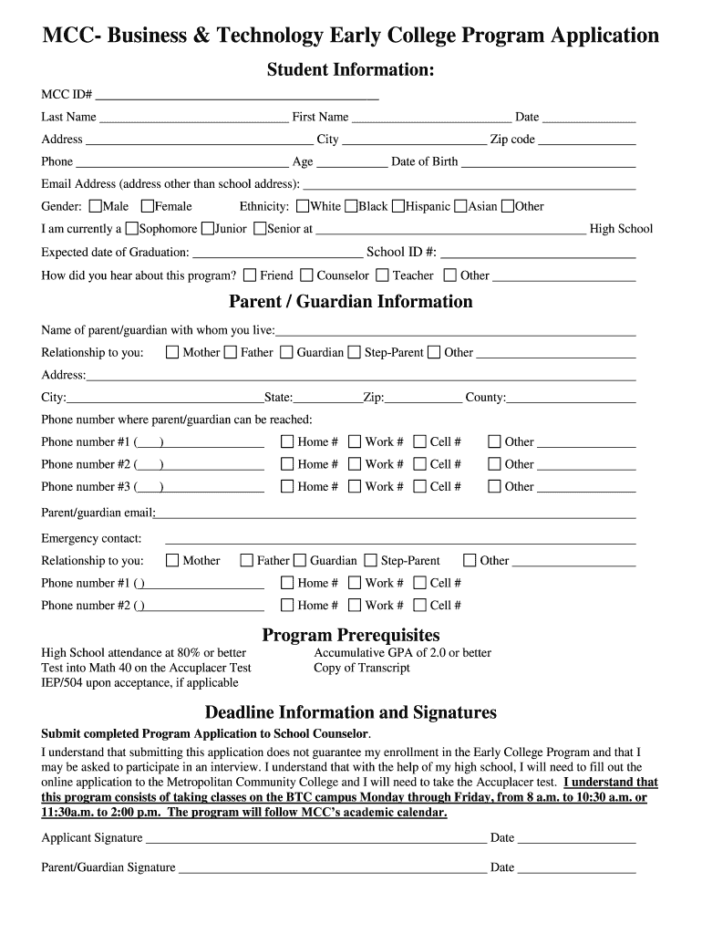 Get the free Early College Programs :: Metropolitan Community College