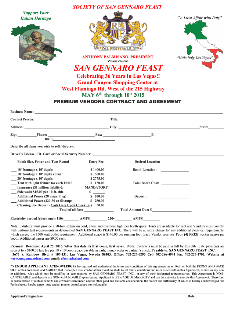 SOCIETY OF SAN GENARO FEAST Support Your Italian Heritage Love Affair with Italy “ANTHONY PARTISAN, PRESIDENT Proudly Presents SAN GENARO FEAST Celebrating 36 Years In Las Vegas!! Grand Canyon Shopping