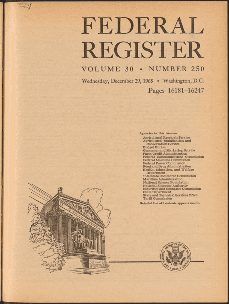 FEDERAL REGISTER VOLUME30N U M B E R 250W Wednesday, December 29, 1965, Washington, D.C. Pages 1618116247Agencies in this issueAgricultural Research Service Agricultural Stabilization and Conservation