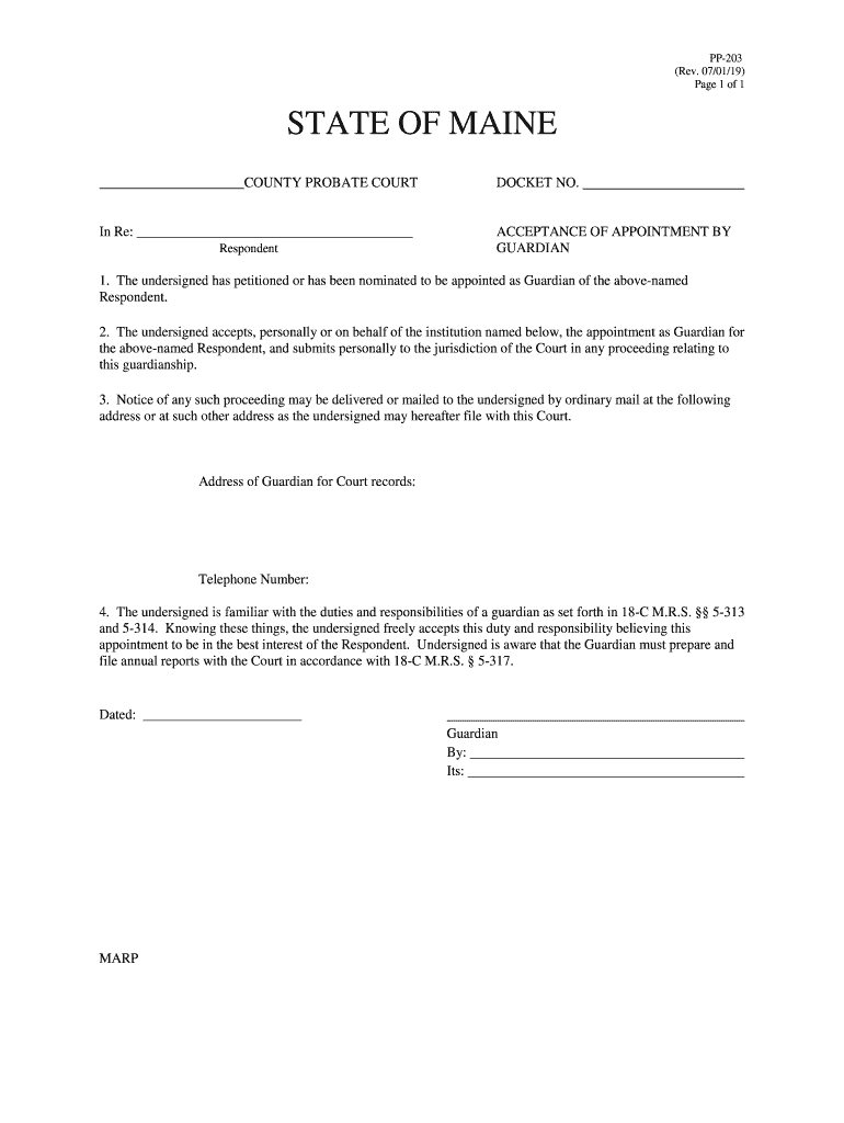 Get the free PP-203 Acceptance of Appointment by Guardian - Maine ...