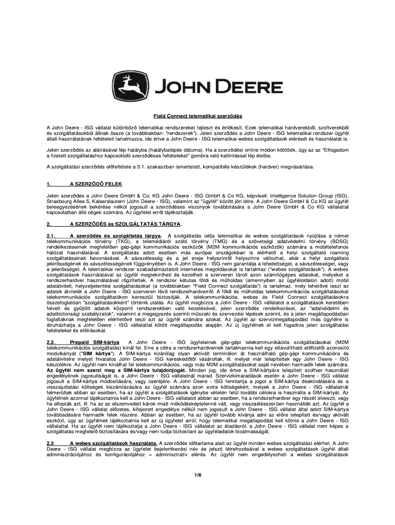 Field Connect telematics zero DS A John Deere ISG Villa klutz telematics rendszereket fellest s rest. Eek, telematics aardvark l, szoftverekb l s szolgltatsokbl link size (a tovbbiakban: “rendered