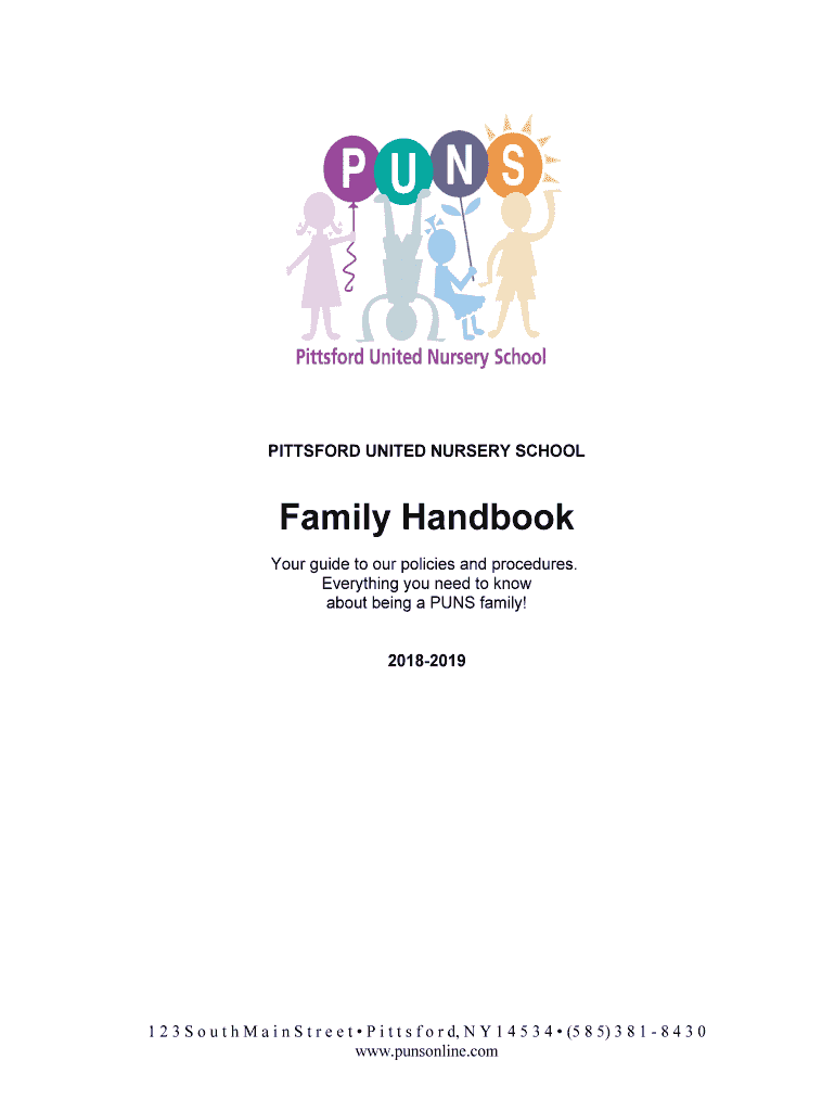 PICKFORD UNITED NURSERY SCHOOLFamily Handbook Your guide to our policies and procedures. Everything you need to know about being a PUNS family! 201820191 2 3 S o u t h M an i n S t r e e t P i t t