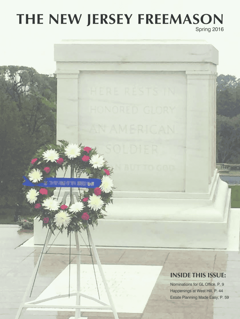 THE NEW JERSEY FREEMASON Spring 2016INSIDE THIS ISSUE: Nominations for GL Office, P. 9 Happenings at West Hill, P. 44 Estate Planning Made Easy, P. 59Registration Procedure for Electronic Balloting