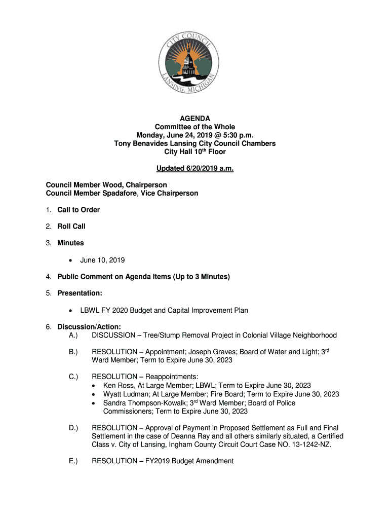 Get the free October 2019 Joint Committee of the Whole/City of Lansing ...