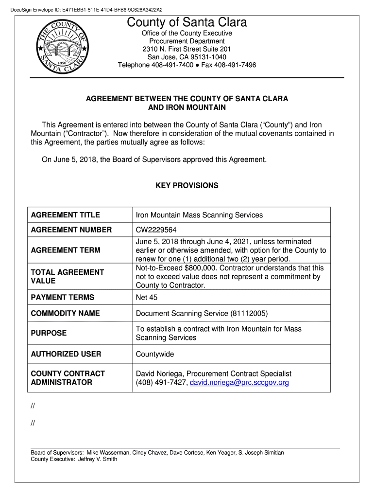 DocuSign Envelope ID: E471EBB1511E41D4BFB69C628A3422A2County of Santa Clara Office of the County Executive Procurement Department 2310 N. First Street Suite 201 San Jose, CA 951311040 Telephone 4084917400
