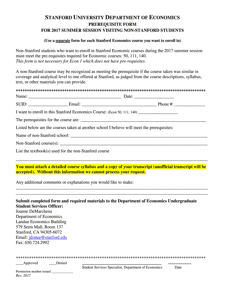 (Use a separate form for each Stanford Economics course you want to enroll in)NonStanford