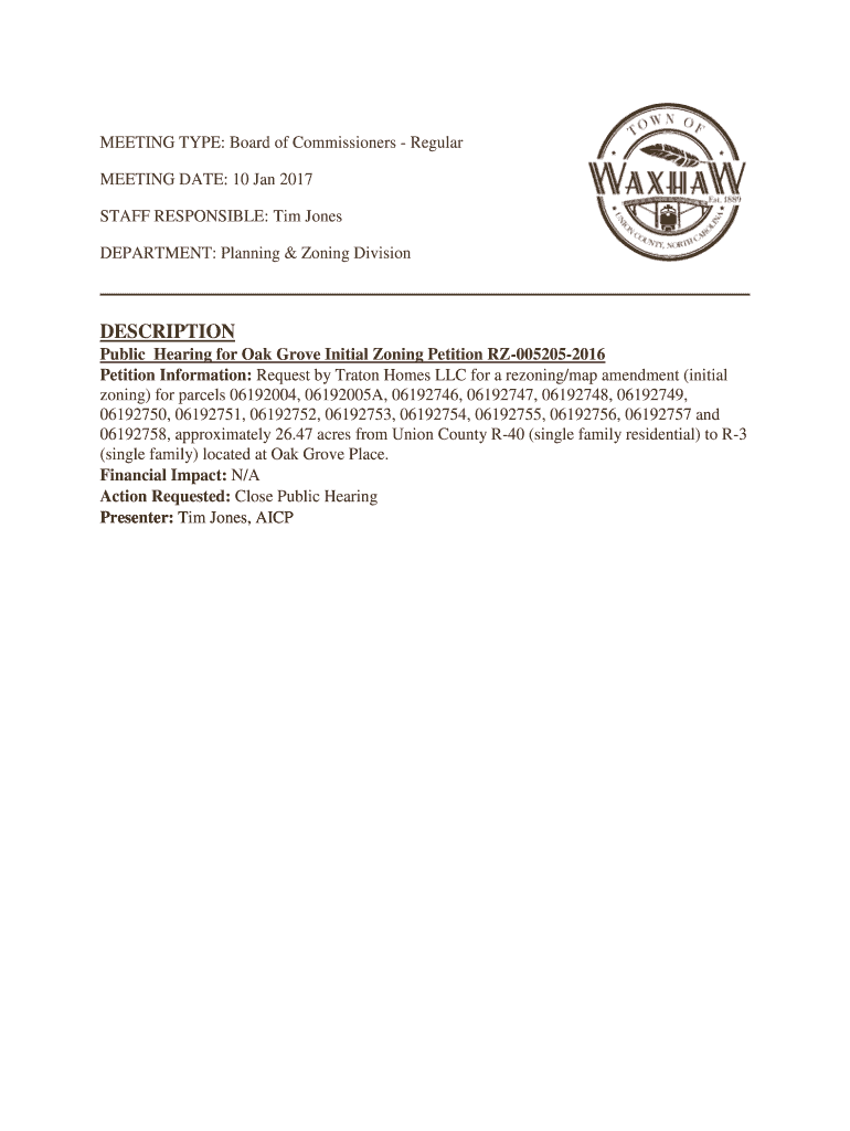 Get the free Public Hearing for Oak Grove Initial Zoning Petition RZ ...