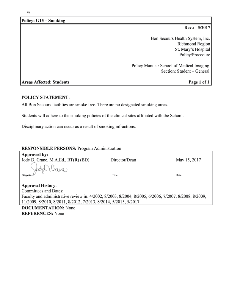 Policy g15 smoking can be filled out by reviewing the guidelines and regulations outlined and ensuring compliance.