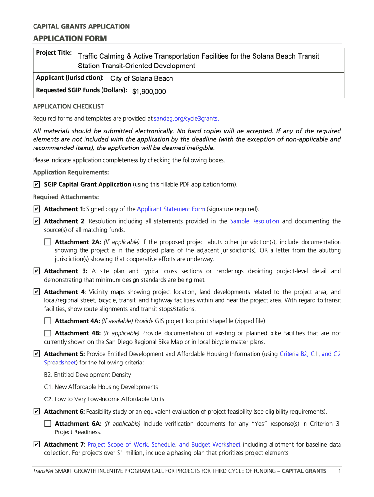 CAPITAL GRANTS APPLICATIONAPPLICATION FORM Project Title:Traffic Calming & Active Transportation Facilities for the Solano Beach Transit Station TransitOriented DevelopmentApplicant (Jurisdiction):City