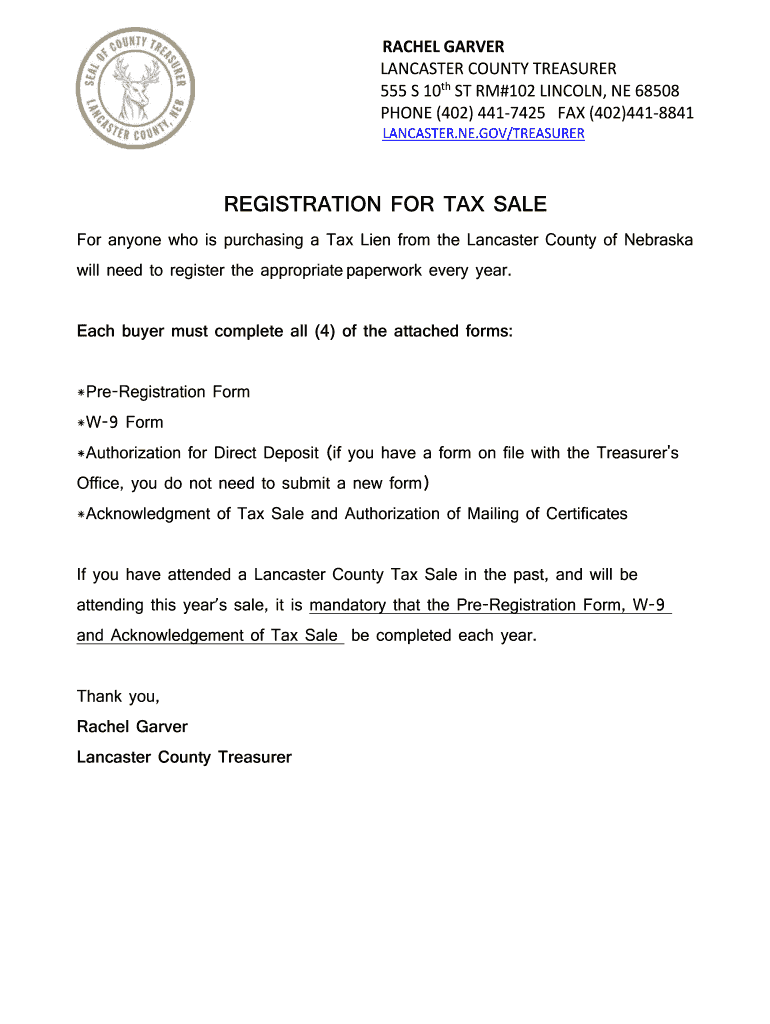 LANCASTER.NE.GOV/TREASURERREGISTRATION FOR TAX SALE