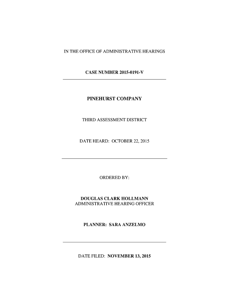 IN THE OFFICE OF ADMINISTRATIVE HEARINGS CASE NUMBER 20150191V PANKHURST COMPANYTHIRD ASSESSMENT DISTRICTDATE HEARD: OCTOBER 22, 2015, ORDERED BY:DOUGLAS CLARK HOLLMAN ADMINISTRATIVE HEARING OFFICERPLANNER: