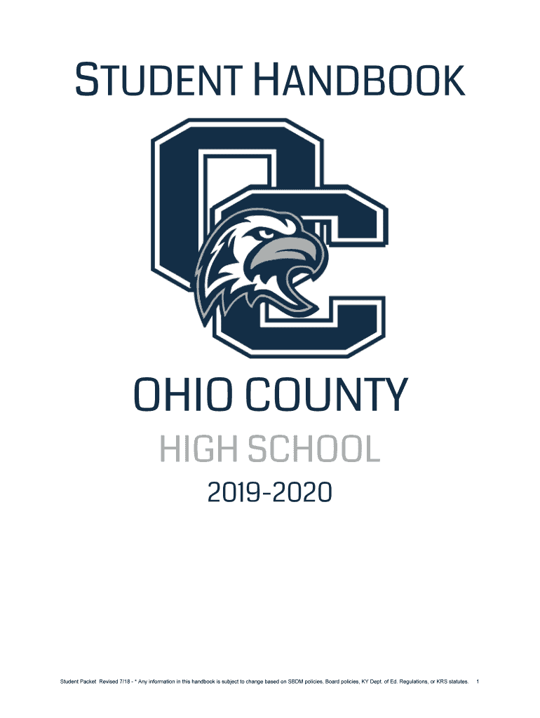 STUDENT HANDBOOKOHIO COUNTY HIGH SCHOOL 20192020Student Packet Revised 7/18 * Any information in this handbook is subject to change based on SBD policies, Board policies, KY Dept. of Ed. Regulations,