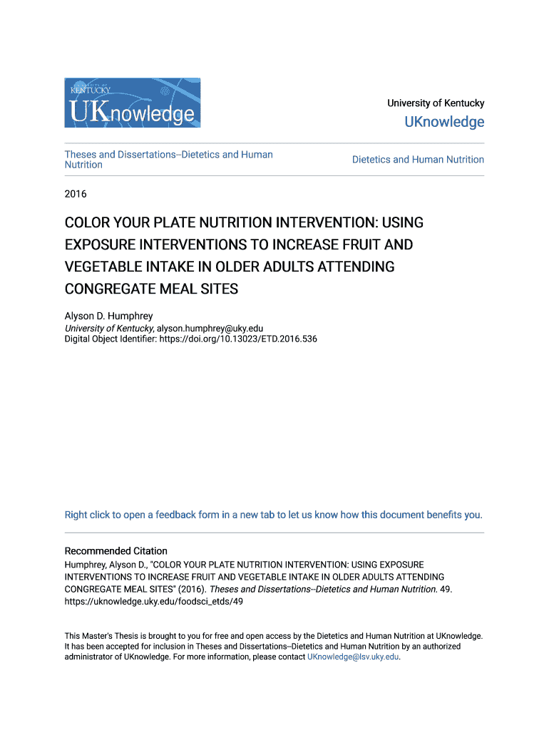 NutritionDietetics and Human Nutrition2016COLOR YOUR PLATE NUTRITION INTERVENTION: USING