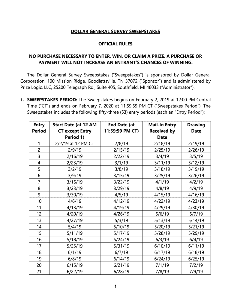 DOLLAR GENERAL SURVEY SWEEPSTAKES