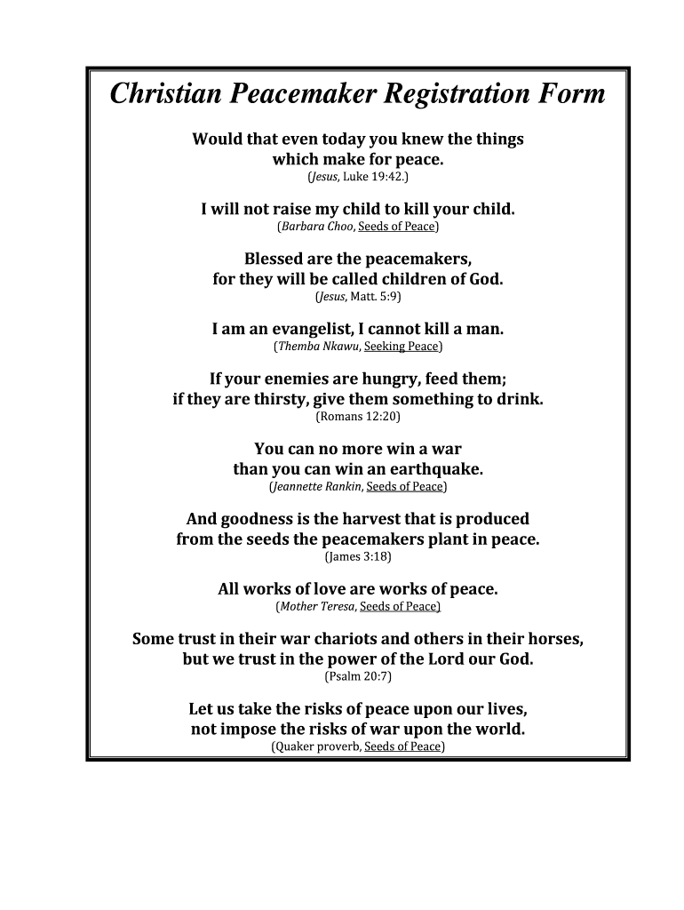 Get the free Christian Peacemaker Registration Form