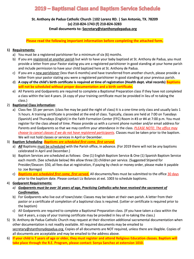 St. Anthony de Padua Catholic Church 102 Lorenz RD. San Antonio, TX. 78209 (o) 2108241743 (f) 2108243283 Email documents to: Secretary stanthonydepadua.org Please read the following important information
