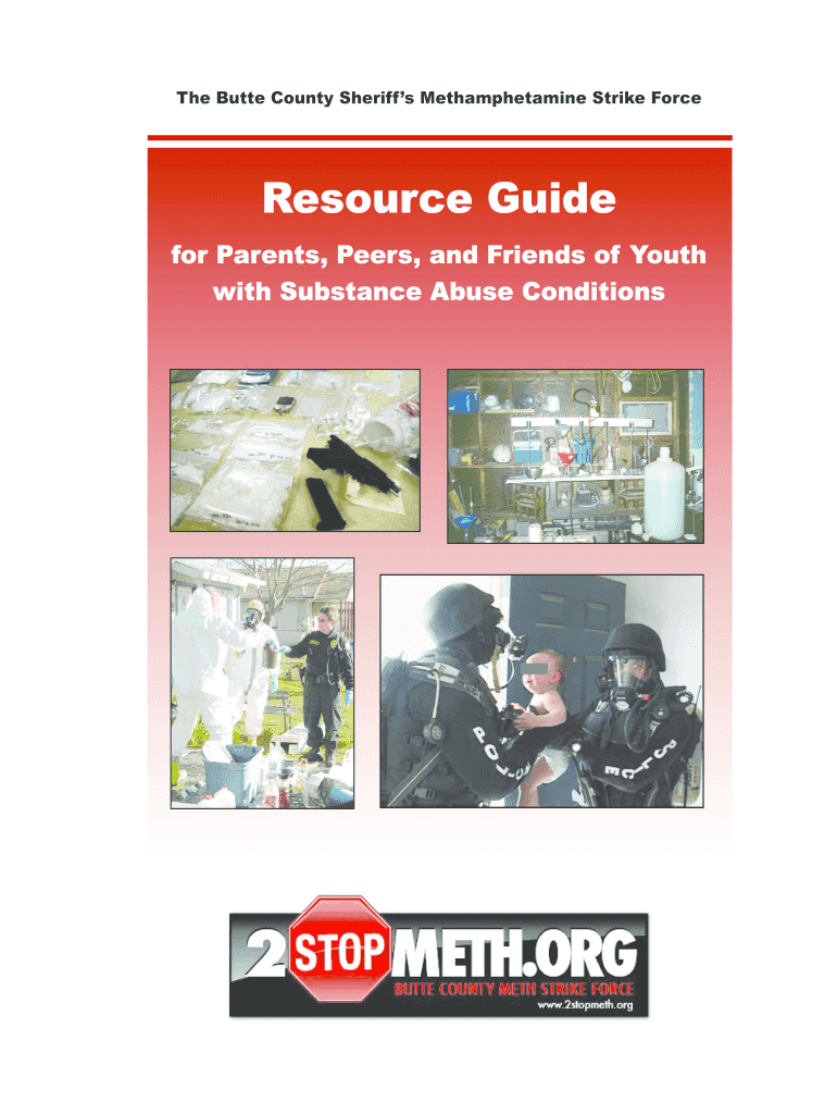 The Butte County Sheriffs Methamphetamine Strike Force Resource Guide for Parents, Peers, and Friends of Youth with Substance Abuse Conditions (This page intentionally left blank.) A Letter from the