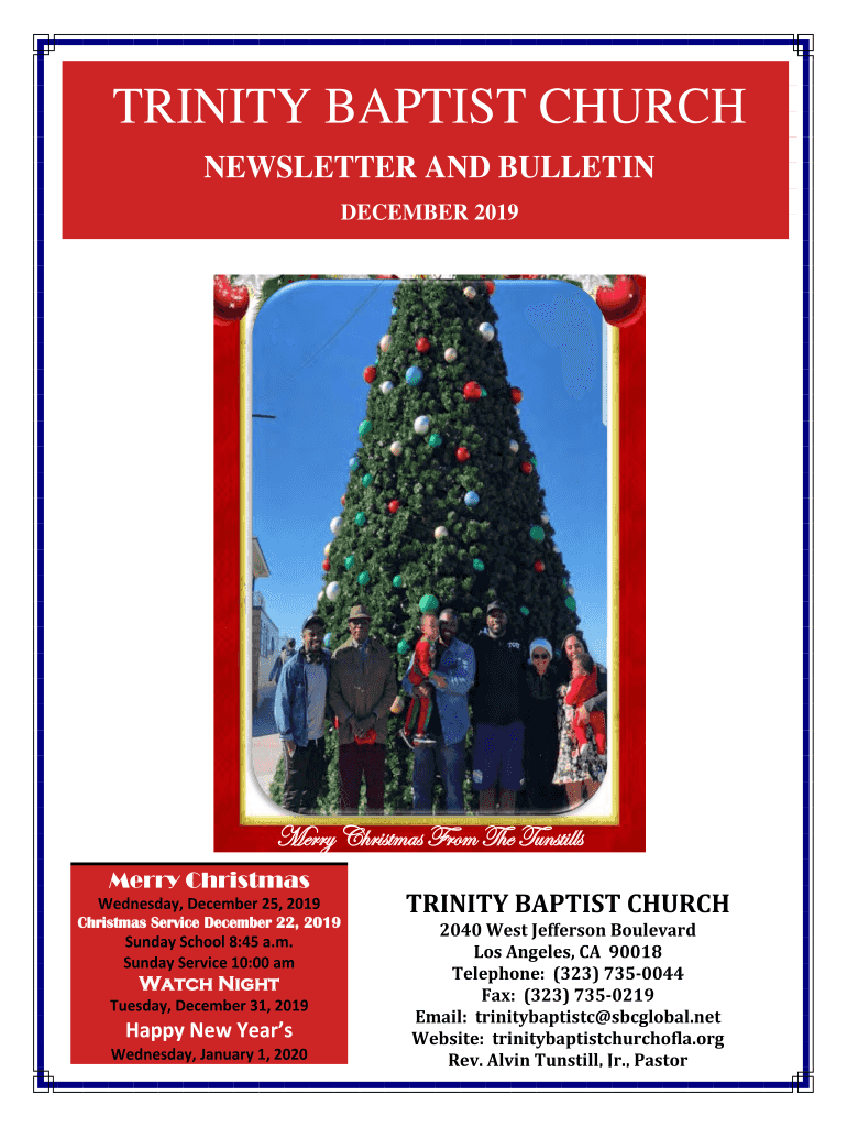 Merry Christmas Wednesday, December 25, 2019Christmas Service December 22, 2019Sunday School 8:45 a.m.