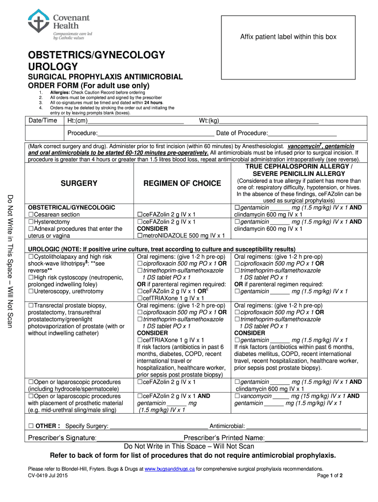 Get the free Antimicrobial Surgical Prophylaxis Order Form ... - UGotaBug - extcontent covenanthe...