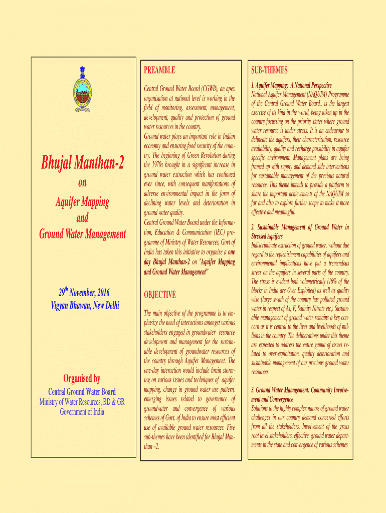 Brutal Man than Manthan2 on Aquifer Mapping and Ground Water Management29th November 2016 Libyan Shawn, New DelhiOrganised by Central Ground Water Board Ministry of Water Resources, RD & GR Government