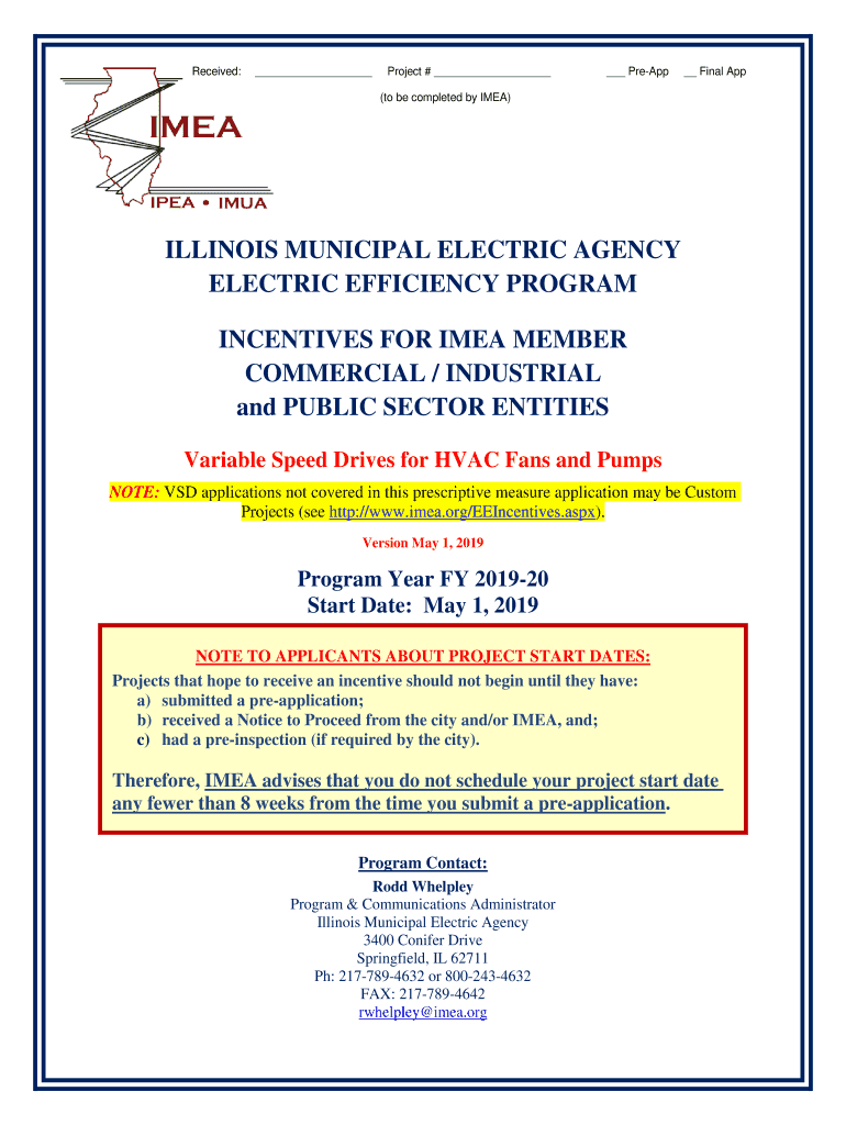 Received: Project # Preamp Final App(to be completed by IDEA)ILLINOIS MUNICIPAL ELECTRIC AGENCY ELECTRIC EFFICIENCY PROGRAM INCENTIVES FOR IDEA MEMBER COMMERCIAL / INDUSTRIAL and PUBLIC SECTOR ENTITIES