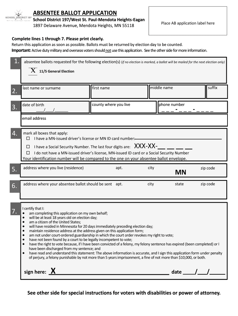 1897 Delaware Avenue, Mendoza Heights, MN 55118Place AB application label incomplete lines 1 through 7. Please print