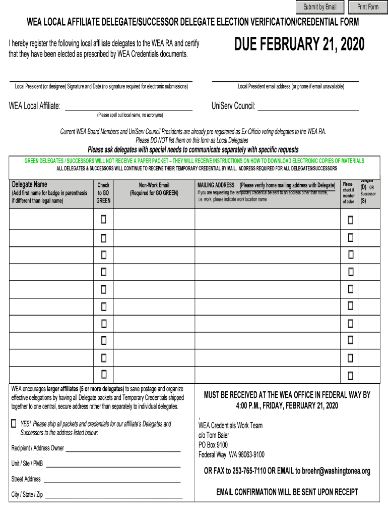 Get the free WEA LOCAL AFFILIATE DELEGATE/SUCCESSOR DELEGATE - action washingtonea