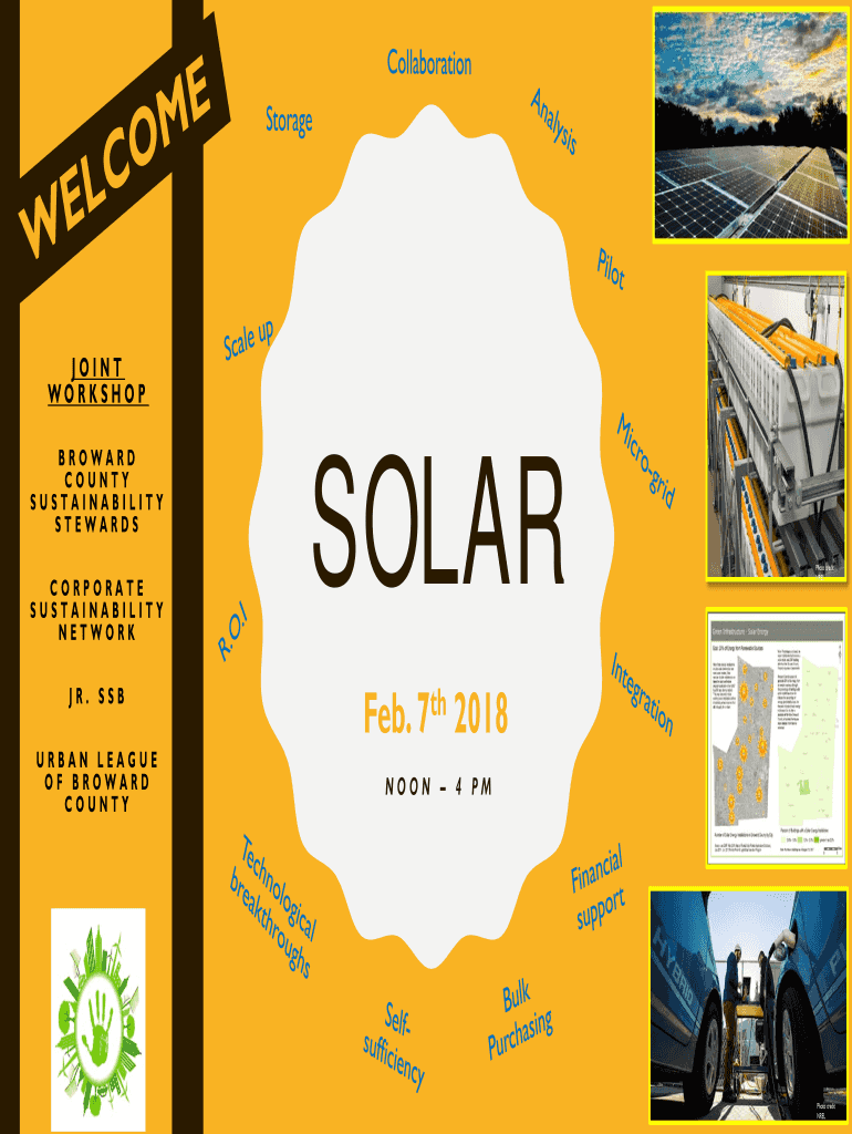 StorageJOINT WORKSHOP BROWARD COUNTY SUSTAINABILITY STEWARDS CORPORATE SUSTAINABILITY NETWORK JR.SUBURBAN LEAGUE OF BROWARD CONTROL Photo credit Refer. 7th 2018 NOON 4 Photo credit NRELAGENDA Introduction