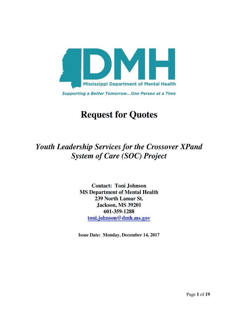 Request for QuotesYouth Leadership Services for the Crossover Expand
